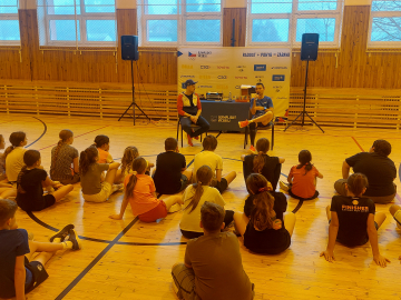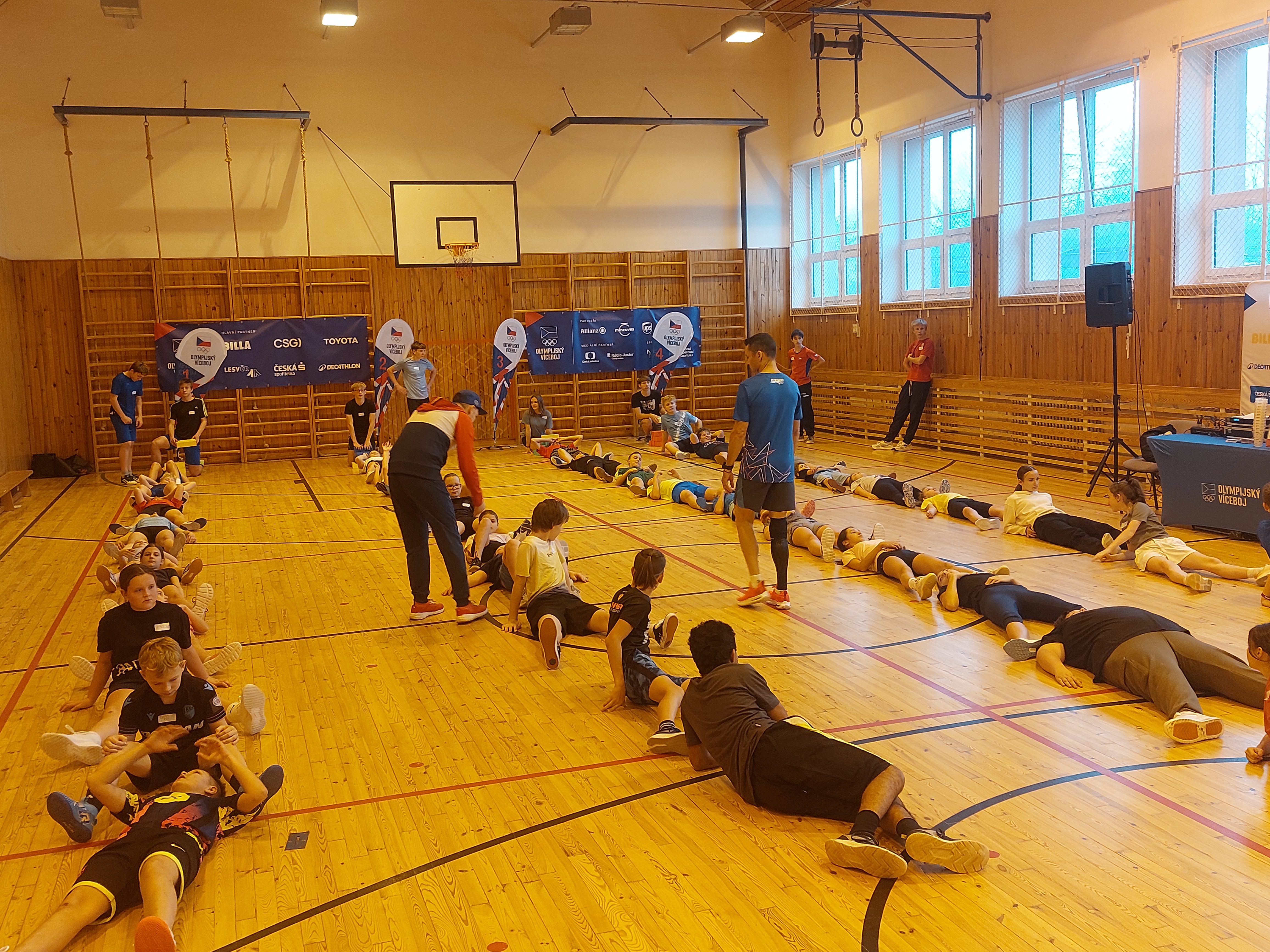 díky aktivnímu zapojení do sportovního projektu olympijského víceboje (OVOV) se nám podařilo přivítat ve škole šestinásobného paralympijského vítěze a šestinásobného mistra světa, pana Jiřího Ježka, který si společně se svým týmem připravil pro vybrané žáky mnoho zajímavých sportovních aktivit, jichž se sám aktivně účastnil. Ale nejen to. Celá akce pokračovala velmi zajímavou besedou, kde nás nechal nahlédnout pod pokličku své sportovní profesionální přípravy, ale také velice otevřeně vyprávěl o svém úrazu v dětství, o mnoha důležitých okamžicích ve svém nejen sportovním životě, ale také velmi poutavě sdílel své zkušenosti z období po ukončení své bohaté sportovní kariéry. Zdůraznil skutečnou hodnotu a důležitost sportu, který rozvíjí smysl pro pravidelnost, píli, respektování pravidel, socializaci (mnohá nová přátelství a kamarádství), překonávat mnohé překážky, vystoupit z pohodlnosti, schopnost radovat se z výher, ale především se poučit z proher. Pro děti byl připraven také velmi zajímavý interaktivní kvíz s olympijskou tematikou, kde měly možnost vyhrát některou z cen. Na závěr Jiří Ježek uspořádal svoji autogramiádu, velice ochotně se vyfotil se všemi zájemci. Někteří žáci z vyšších ročníků nám pomáhali s organizací, za to jim patří velký dík!!!
